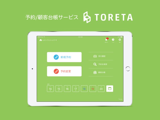 元々、飲食店を経営している中村仁氏が作っているシステムなので、何よりも使いやすいのが特徴です。前述のように、料理人はiPadやPCで予約を受け付けられない場合が多いです。しかし、トレタは余計なものを極力排除し、ボタンなどは大きくわかりやすいように設計されているので、初めてのアルバイトでもすぐに使えるようになるほどの優れたインターフェースです。